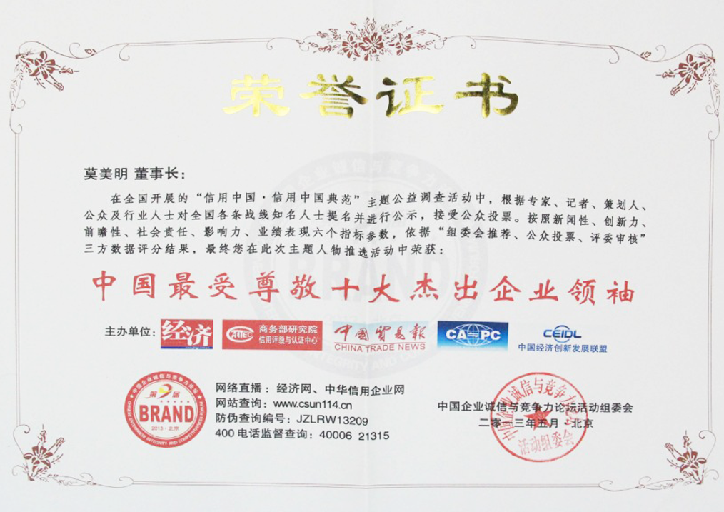 中國最受尊敬十大杰出企業領袖...